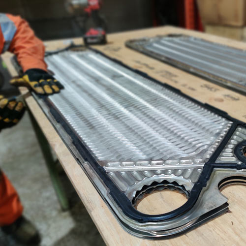 Typically, customers with larger plate heat exchangers choose to gasket existing plate packs to save downtime and labor. This is accomplished through a spare plate pack, which is exchanged periodically per the maintenance schedule.